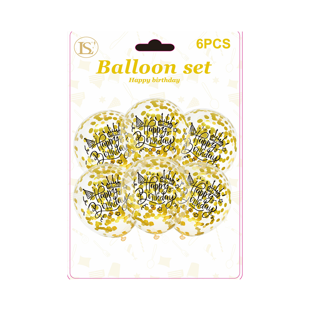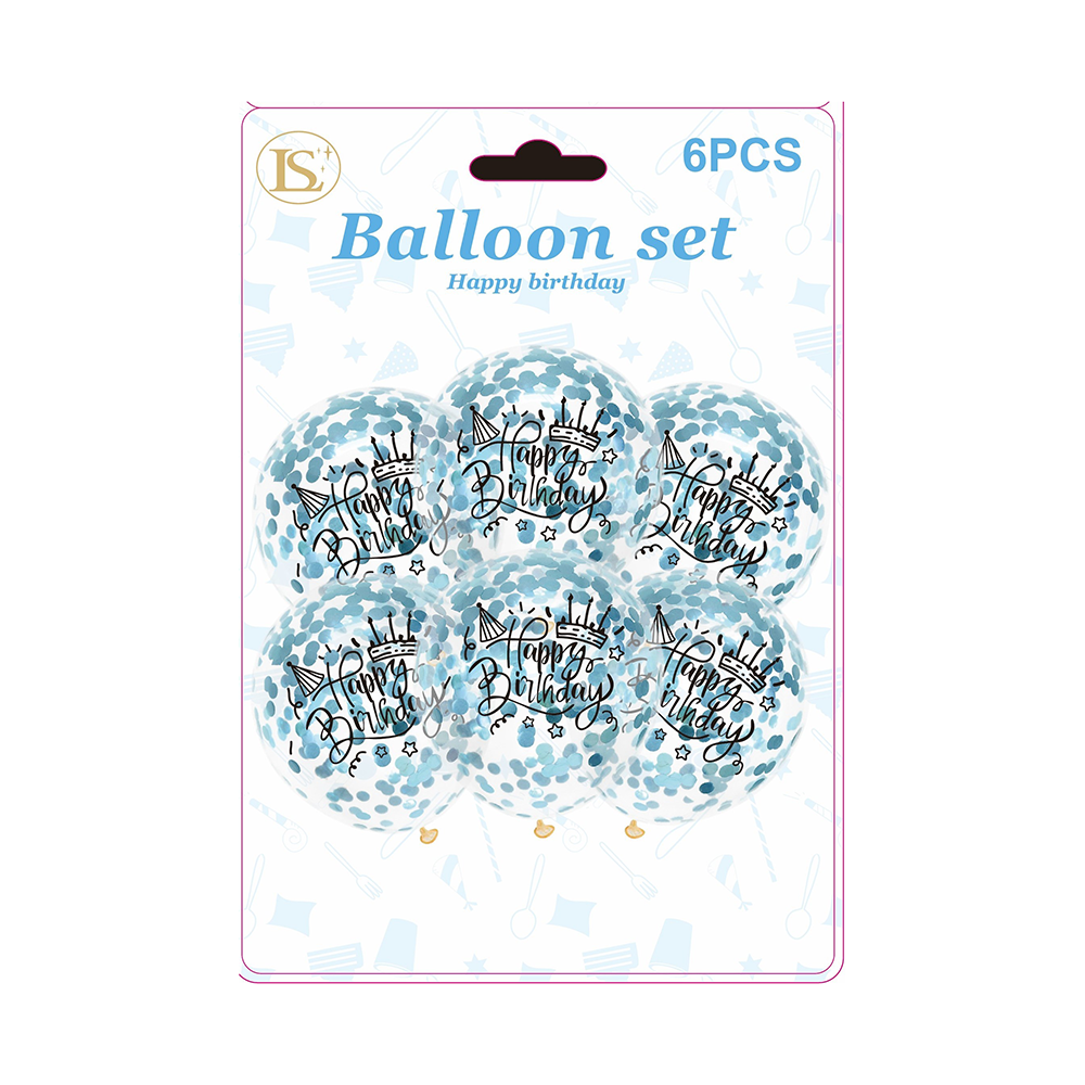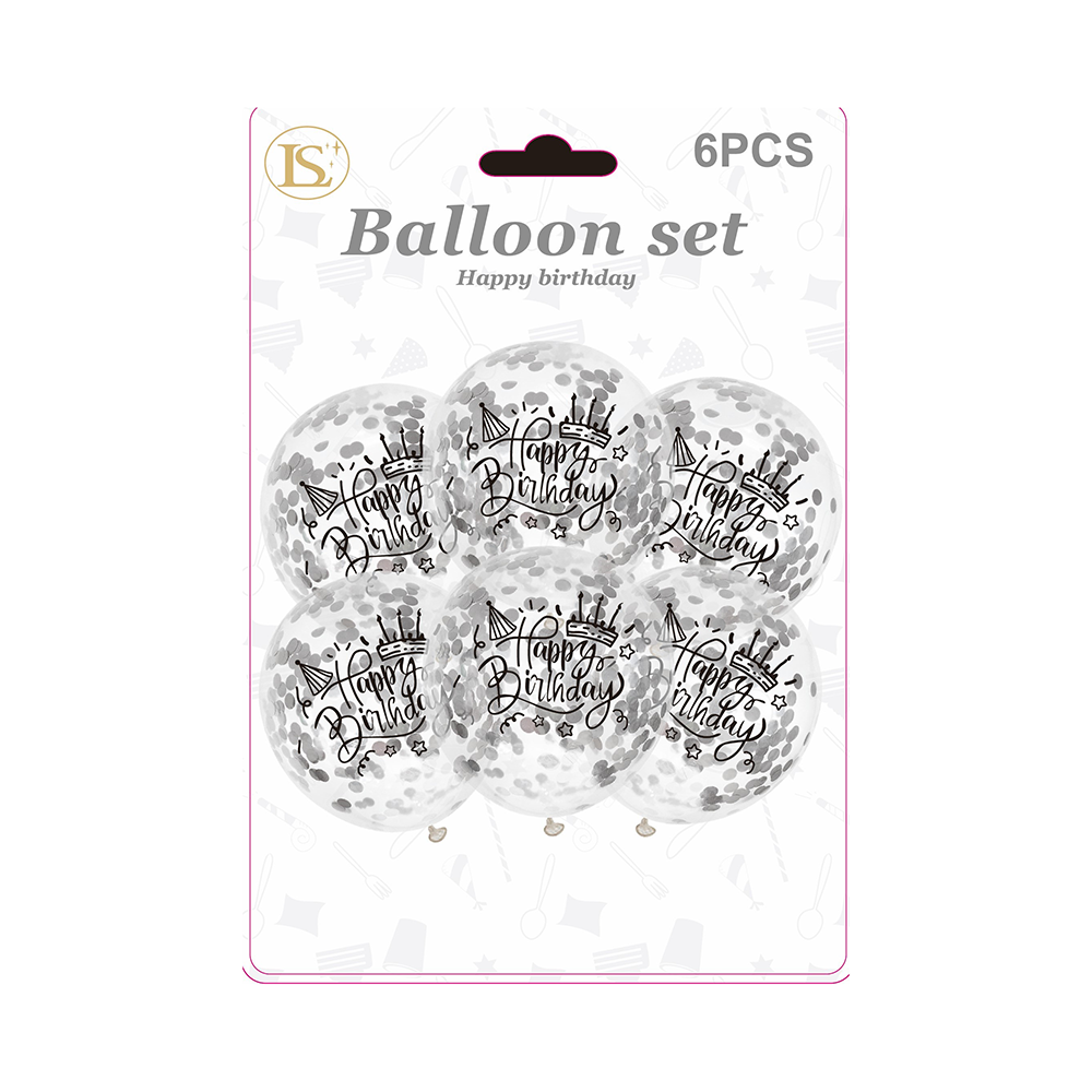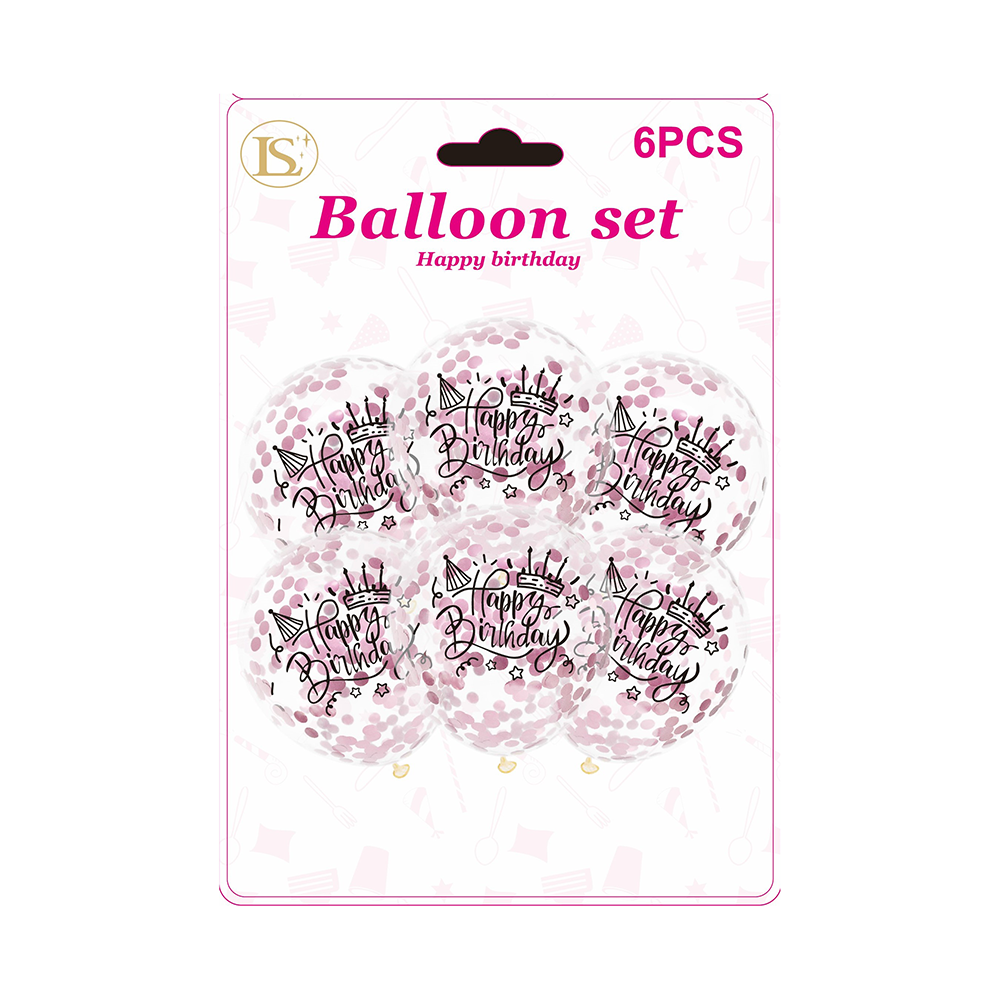12″ Birthday Confetti Balloons,6 pcs/pack (12 packs)