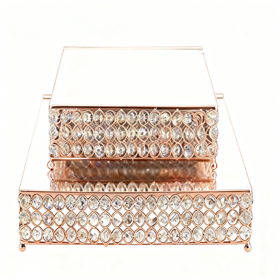 (3.5″x13.25″, 3.5″x17.75″) Square Crystal Beaded Cake Stand/set (no shipping)