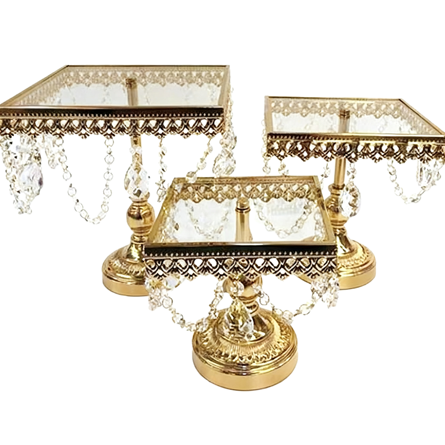 3 Tier (7.5″x7″, 9″x8.5″, 10.5″x10.5″) Chandelier Square Cake Plate Stand, 3pcs/Set