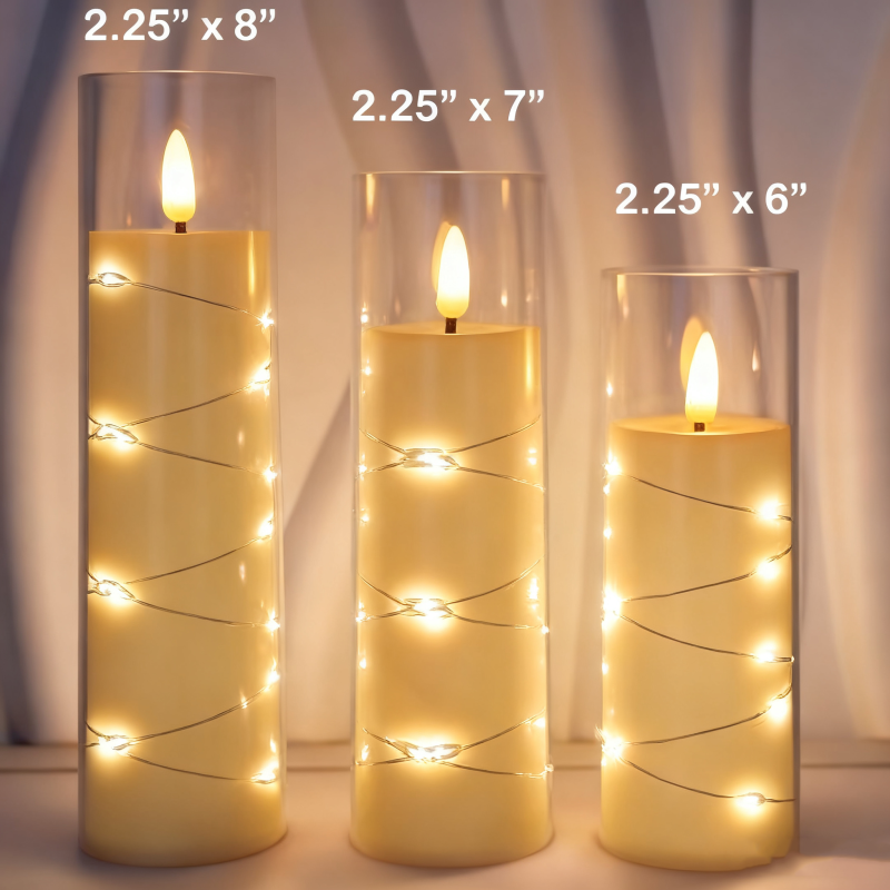 3″ x 6″/7″/8″ LED Candle With String Lights/6pc