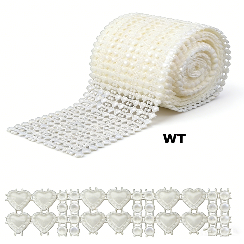 4.5″ Heart Pearl Mesh Ribbon, 10yds/roll (WT)