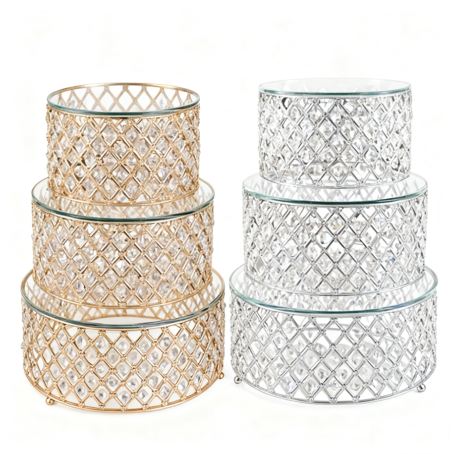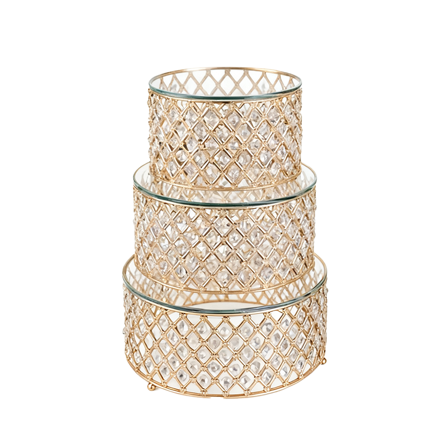 (9.75″x5.5″, 11.75″x5.5″, 13.75″x5.5″) Crystal Beaded Cake Stand, 3 pcs/set (No Shipping)
