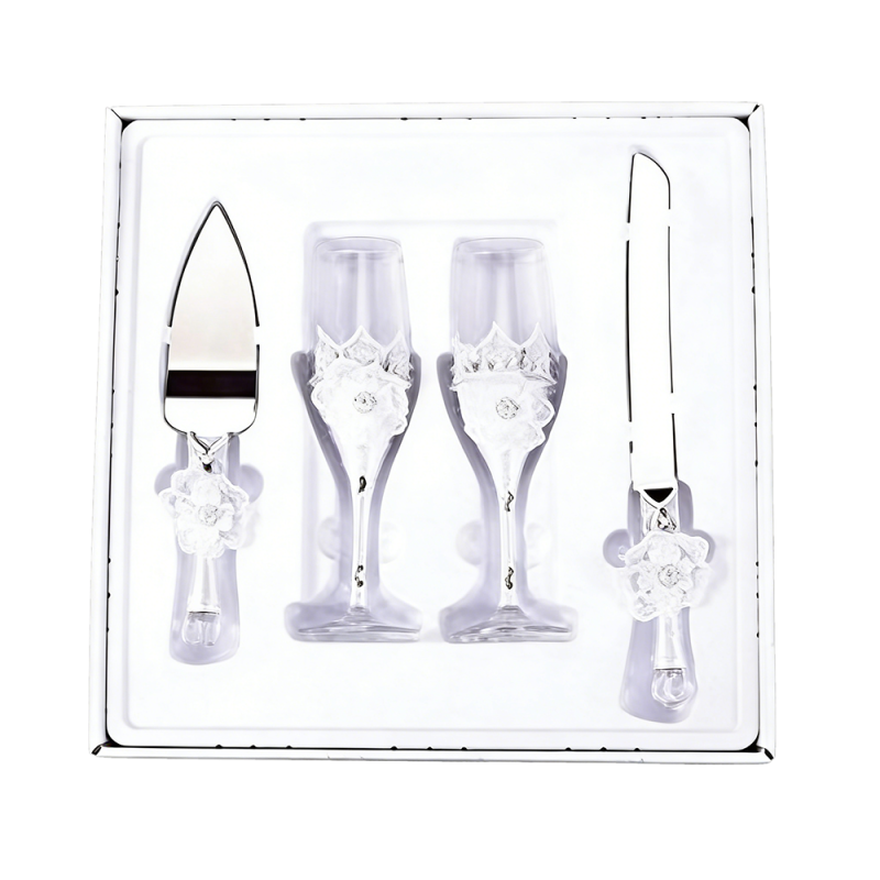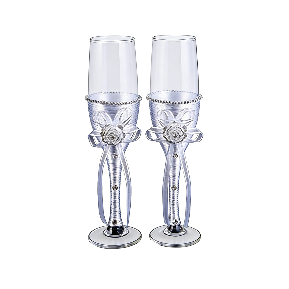 9″ Rhinestone Rose Flower Goblet/Set