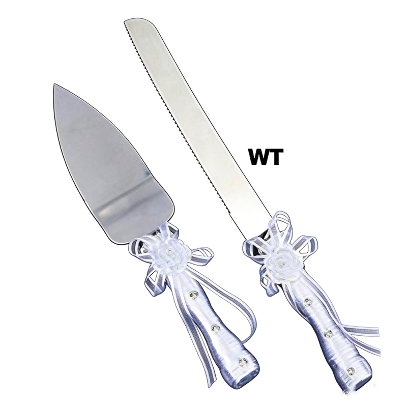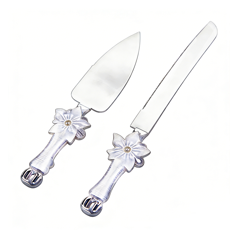Cake Knife Set w Pearl and Rhinestone Flower/set