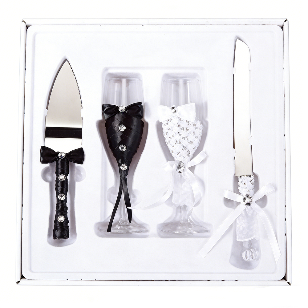 Decorative Rhinestone Stud Globlet w Cake Knife/Set