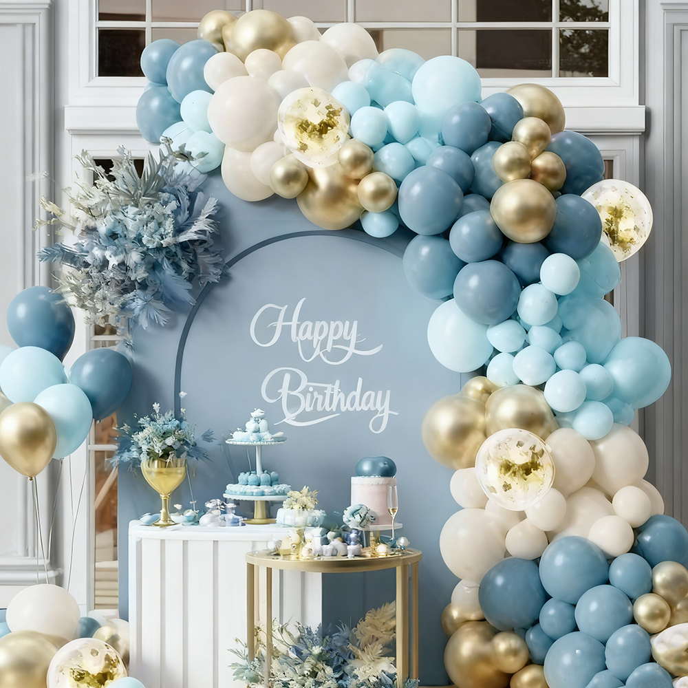 White/Blue/Gold Balloon Garland Arch Kit/set